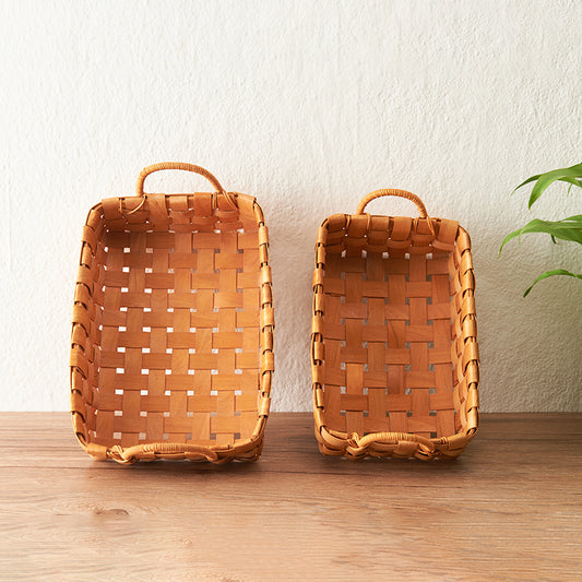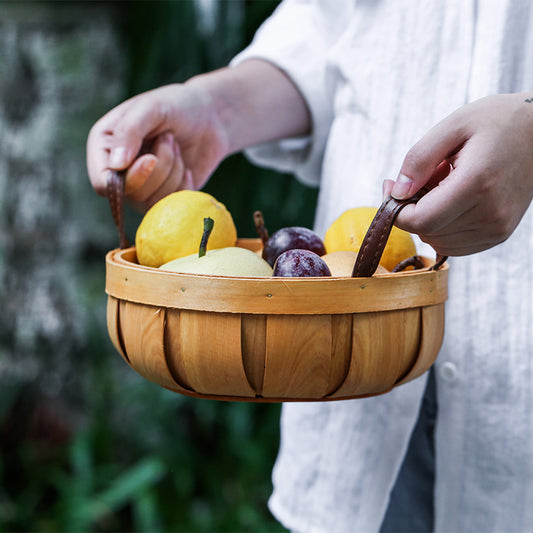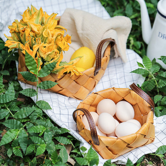 Hand-woven Wood Chip Basket Leather Handle Quality Food Fruit Basket