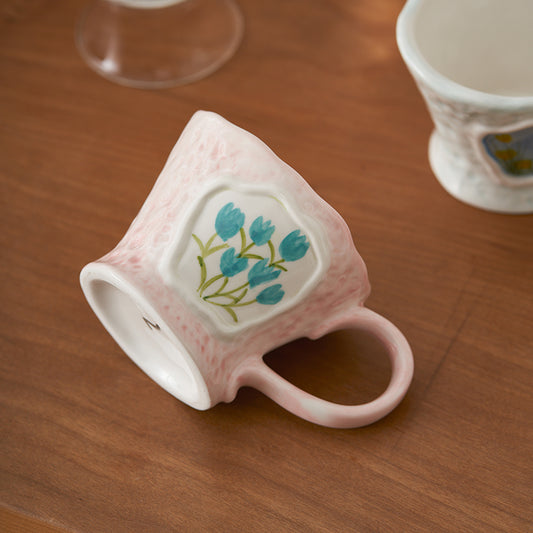 Handmade French Floral Water Cup Ceramic Coffee Mugs for Girls