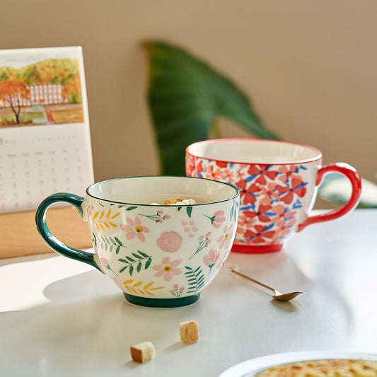 French Floral Ceramic Large Milk Cup Oatmeal Cereal Mugs