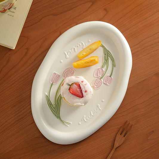 Beautiful Tulips-themed Ceramic Ceremonial Breakfast Plates