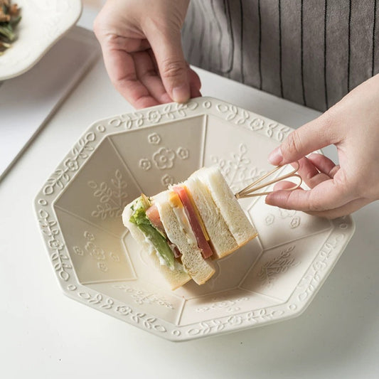 Exquisite Embossed Birds-themed Ceramic Bowl Plate