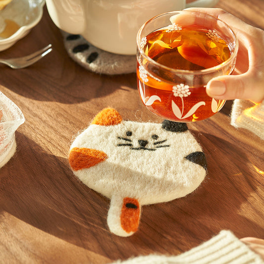 Original Adorable Woolen Heat Pads Kitty Cup Mats