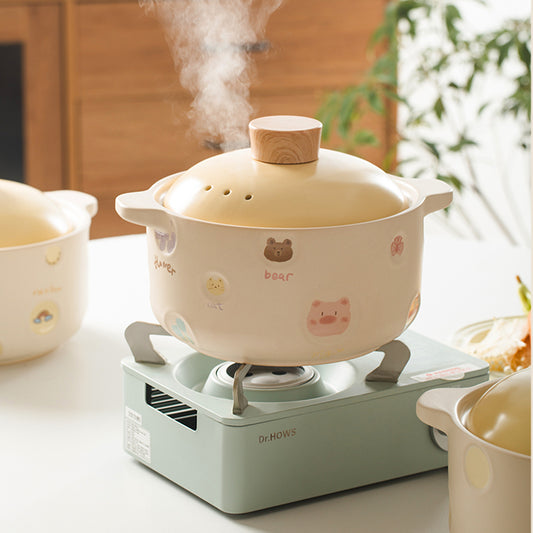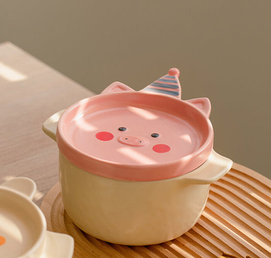 Ceramic Bowls Noodle Pots with Cartoon Lids and Handles