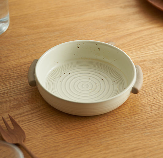 Japanese Style Vintage Crude Ceramic Deep Plates with Handles