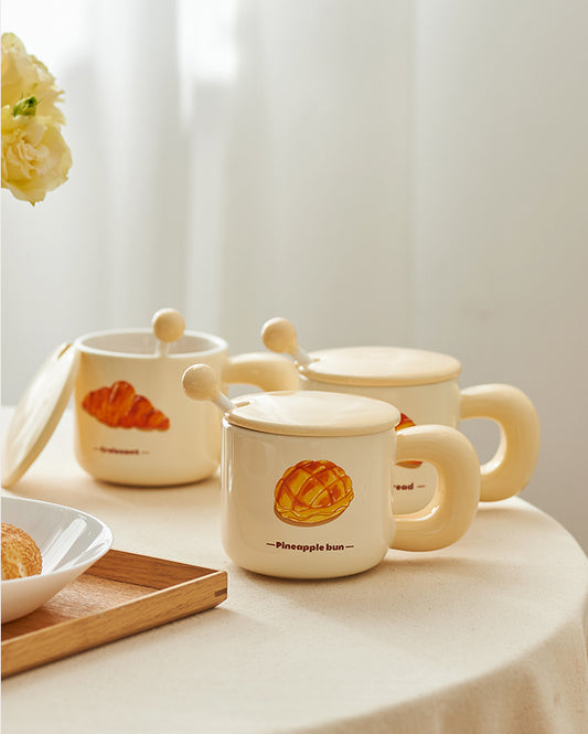 Cute Ceramic Mug with Lids and Spoon for Girls