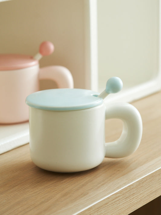 Artistic Ceramic Coffee Mug with Lids and Mixing Spoon
