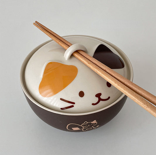 Japanese Style Ceramic Bowls with Kitty Lids