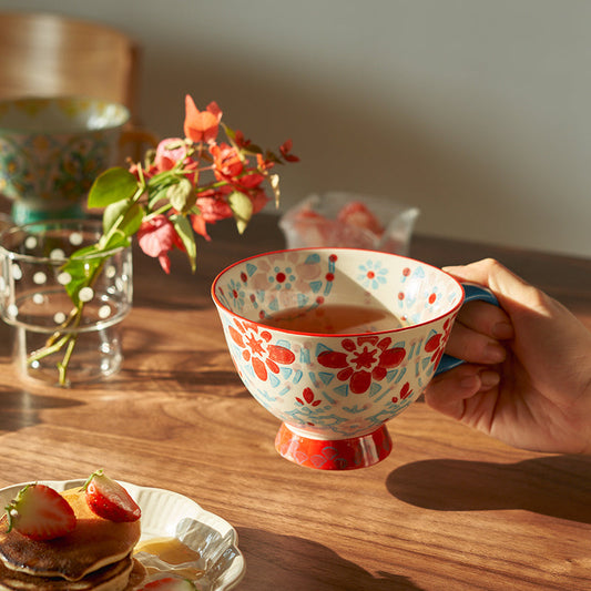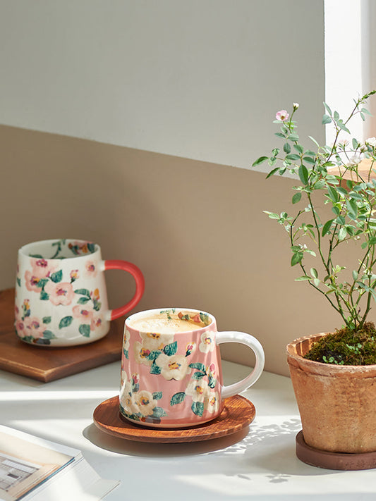 Vintage Ceramic Floral Mug Female Retro Coffee Cup for Women