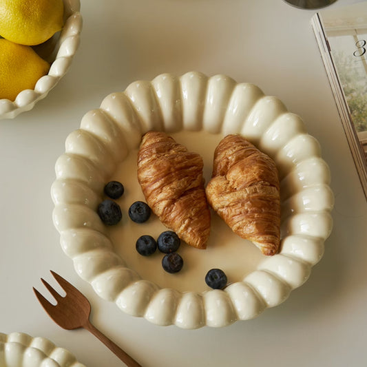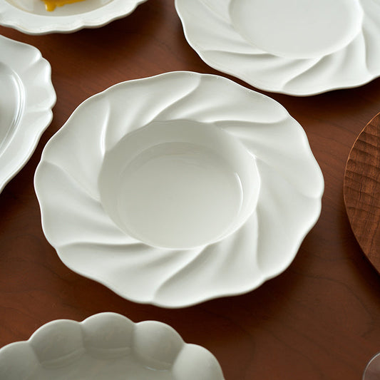 French Vintage Dish Home Ceramic Plate Round Dinner Lace Plate