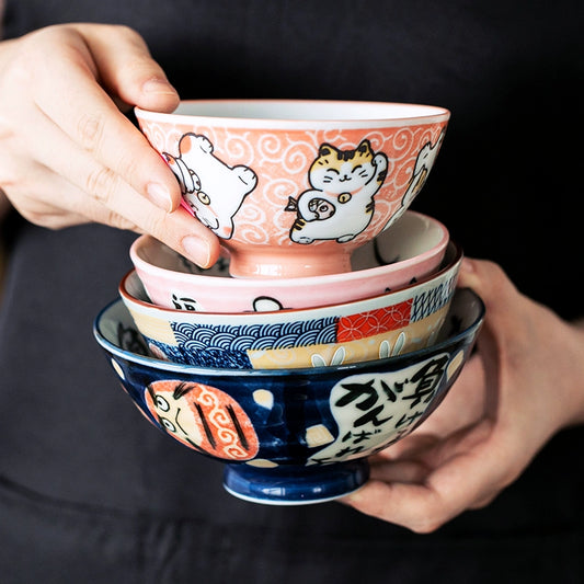 Japan Made Prosperity Animals Ceramic Rice Bowls