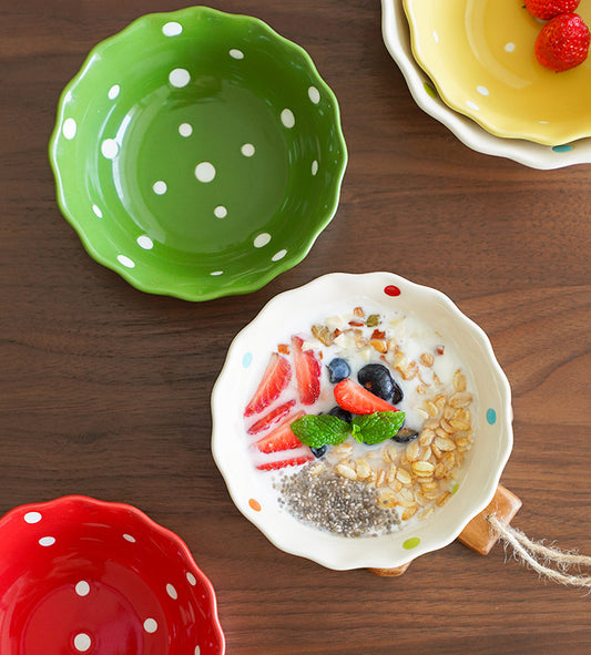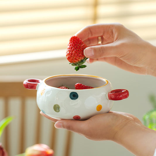Dots Style Ceramic Bowls with Double Handles