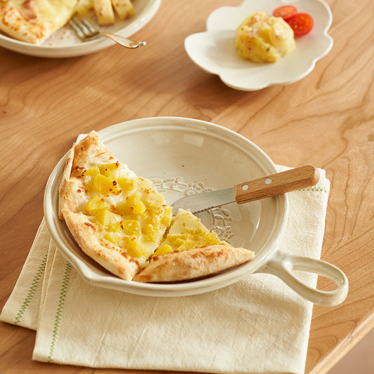 Japanese Style Embossed Floral Plate with Handle
