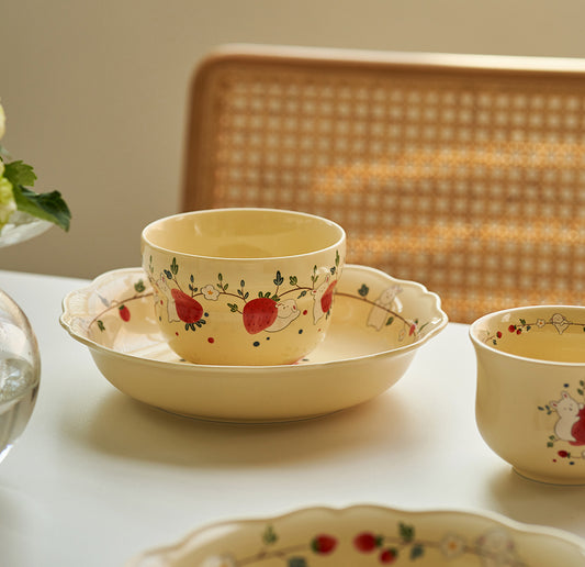 Strawberry Bunny Ceramic Bowls Plates Mugs