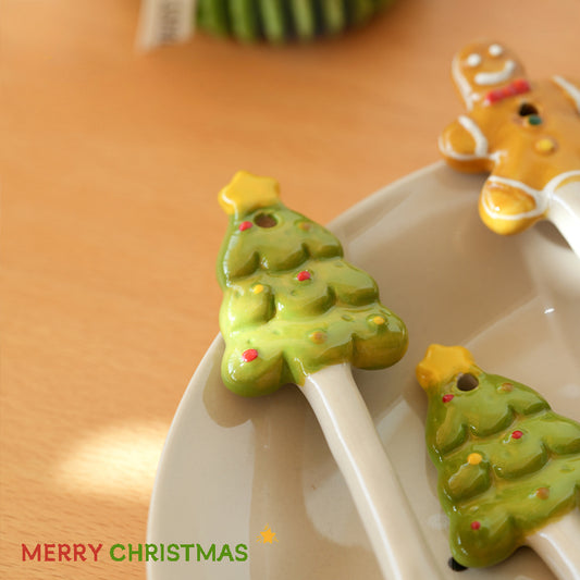 Handpainted Underglazed Ceramic Plate Spoon Christmas Gift