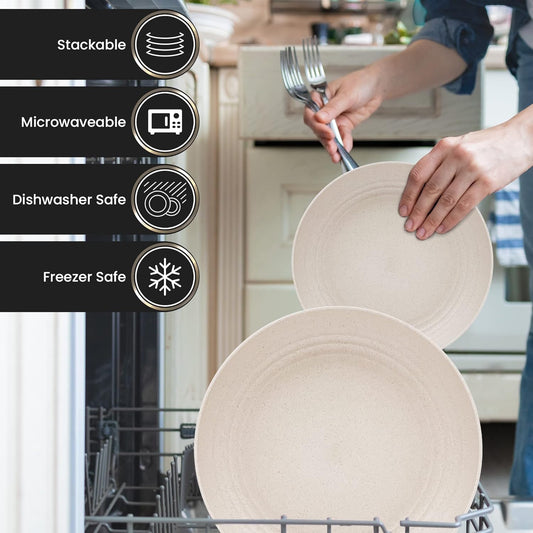 Beige Wheat Straw Plastic Dinnerware Sets 16Pcs / 24Pcs