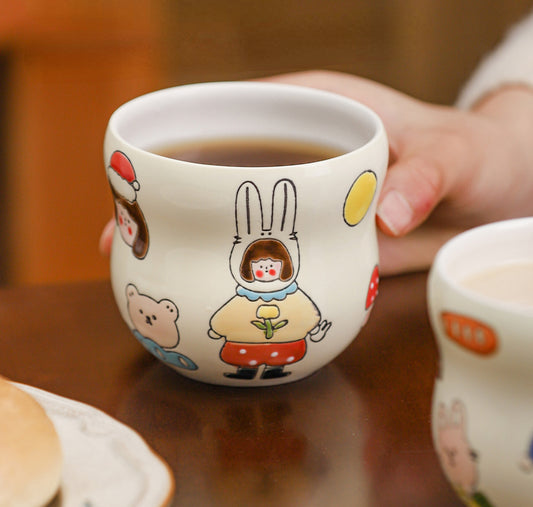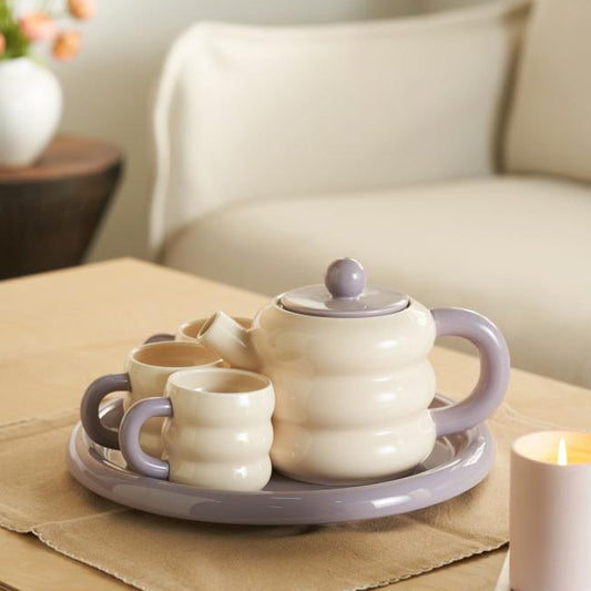 Adorable Ceramic Creamy Style Teapot Mug Set of 6