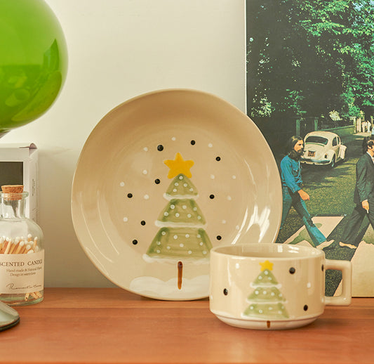 Christmas Tree Hand-painted Ceramic Mugs Plates Set