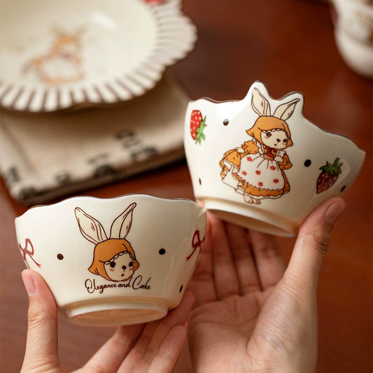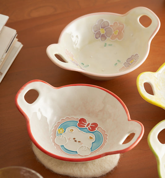 Cute Breakfast Ceramic Bowls Set with Two Handles for Children Set
