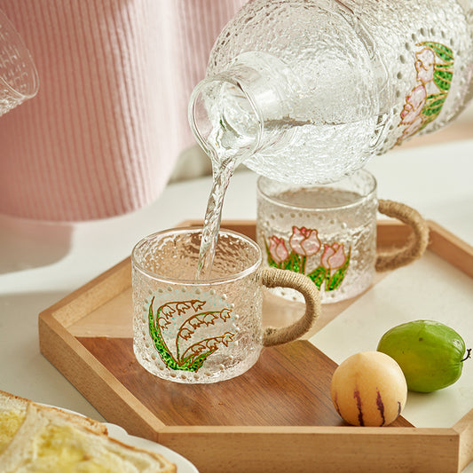 Beautiful Hand-painted Floral Glass Mugs Water Bottles for Girls Set