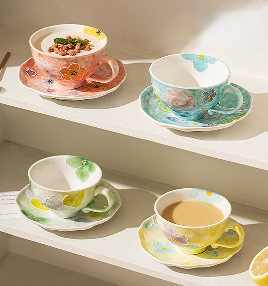 Adorable Floral Ceramic Bowls Plates Spoons Set