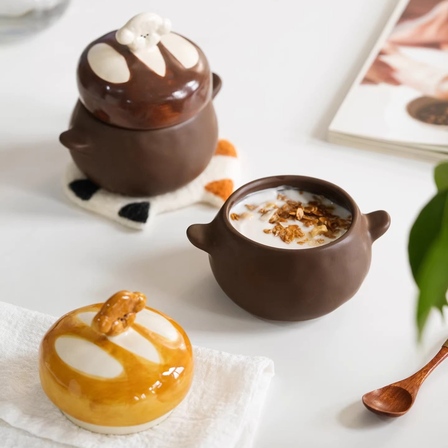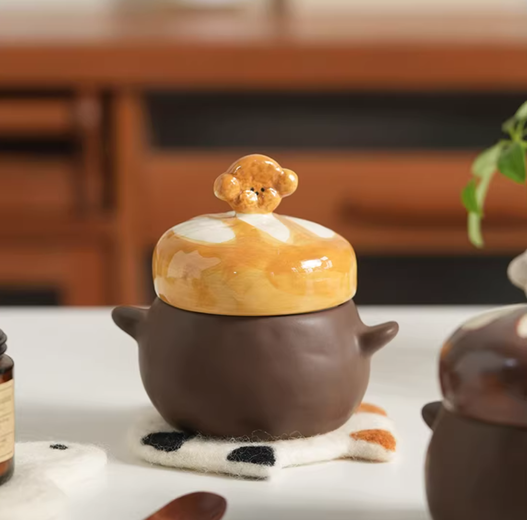 Ceramic Small Moisture-proof Storage Jars with Doggie Lids