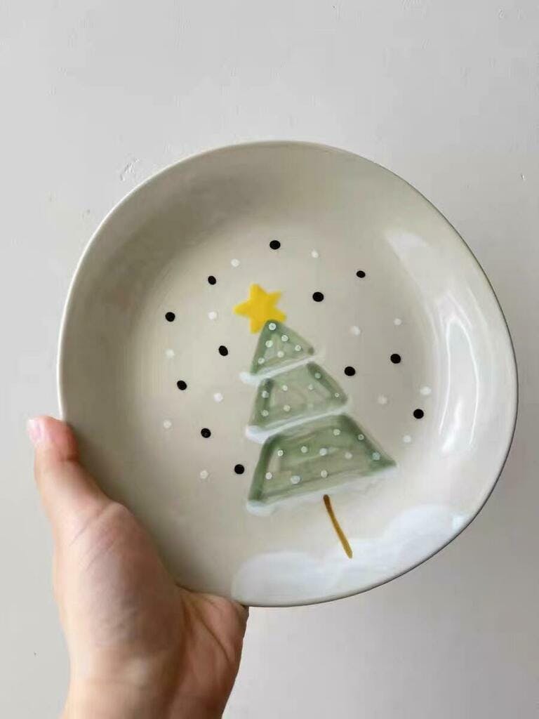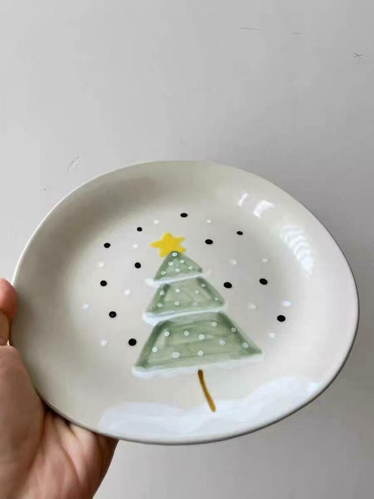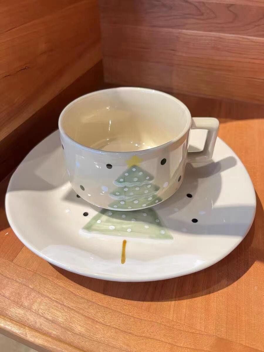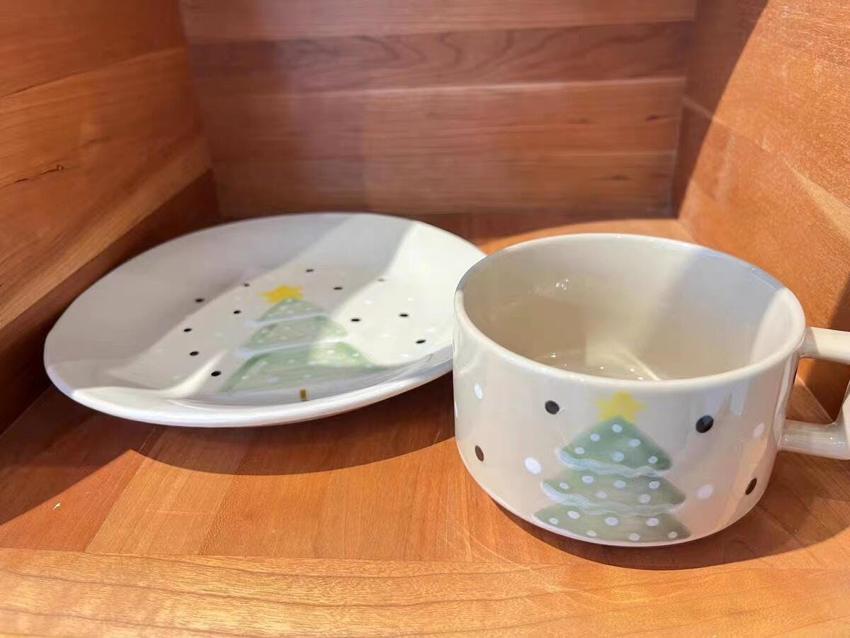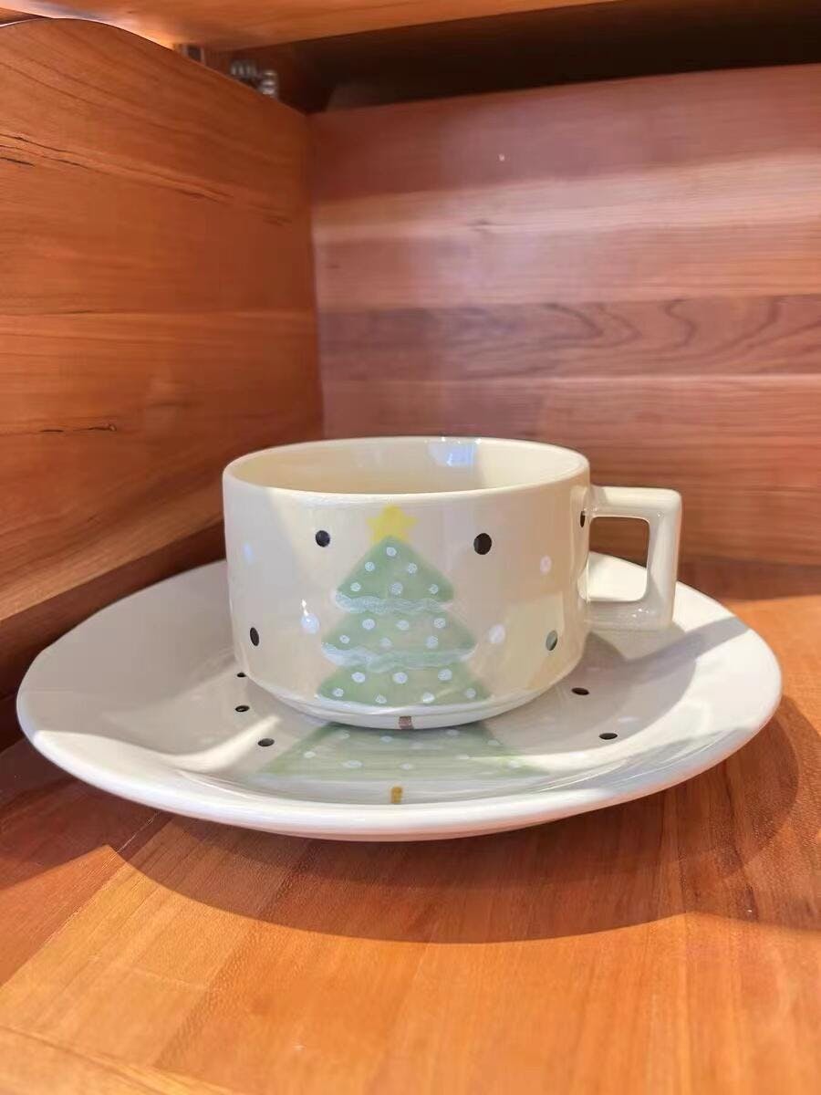 Christmas Tree Hand-painted Ceramic Mugs Plates Set