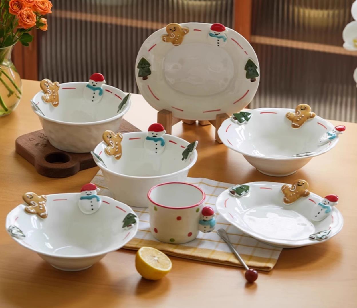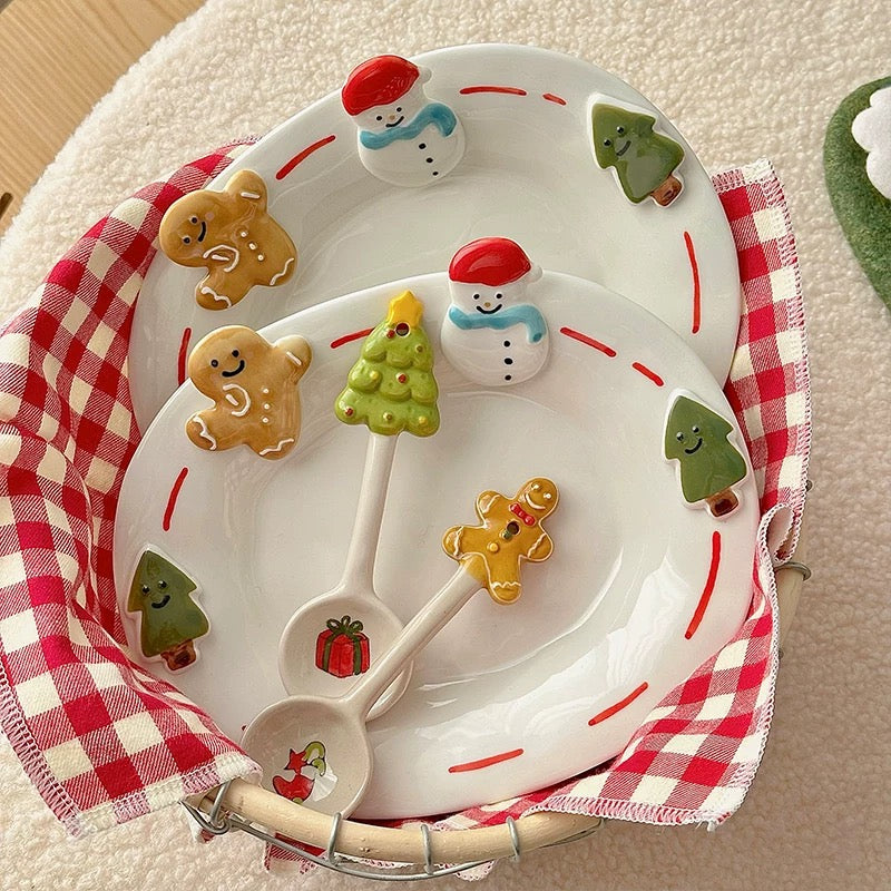 Handpainted Underglazed Ceramic Plate Spoon Christmas Gift