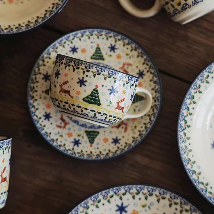 Vintage Christmas Gift Ceramic Coffee Mug Plate